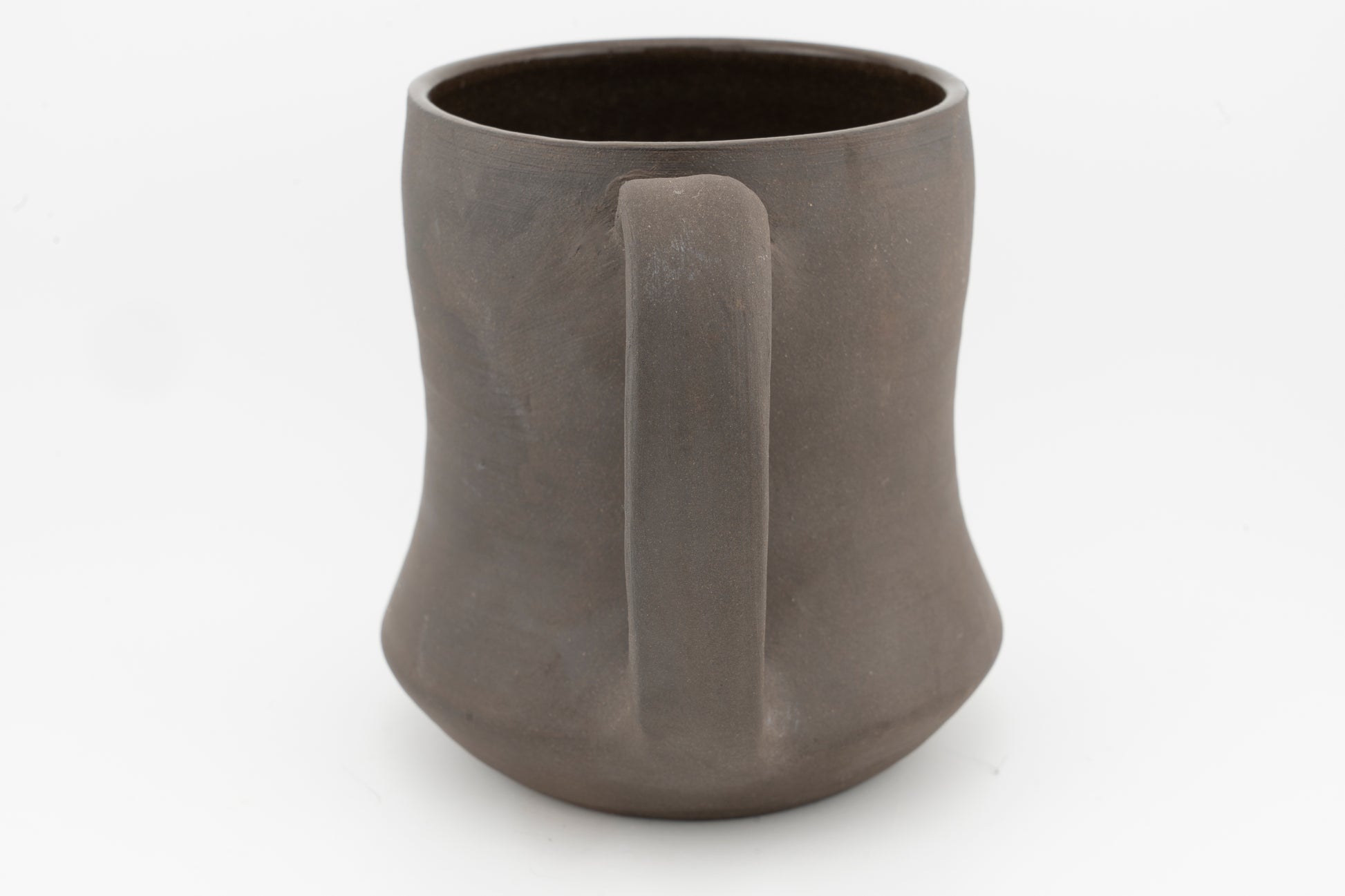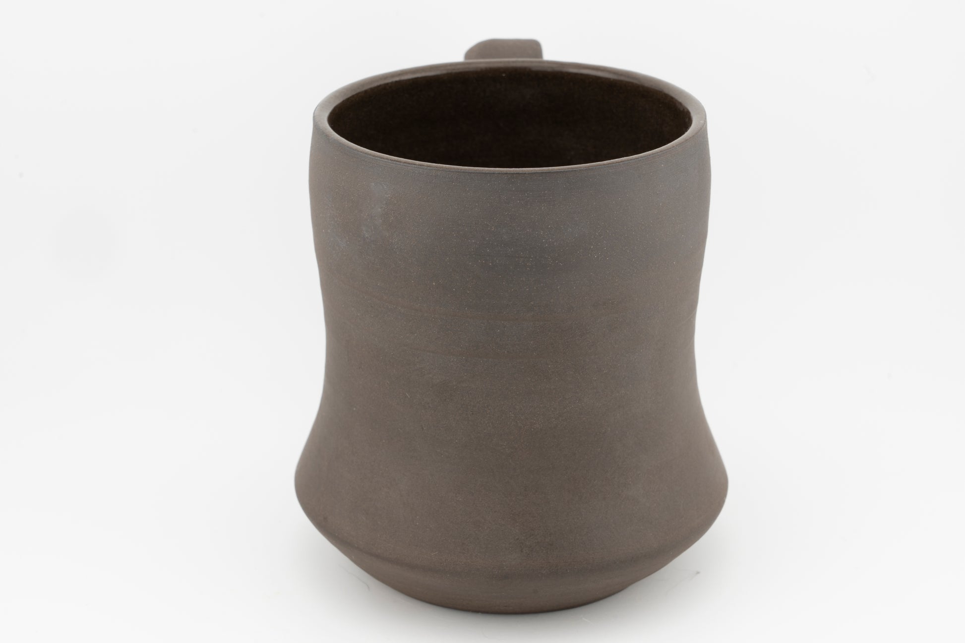 Our tall, curved style, ceramic mug holds 12 or 16 oz of fluid liquid. We pull our handles and add small embellishments after attaching them around the bottom.