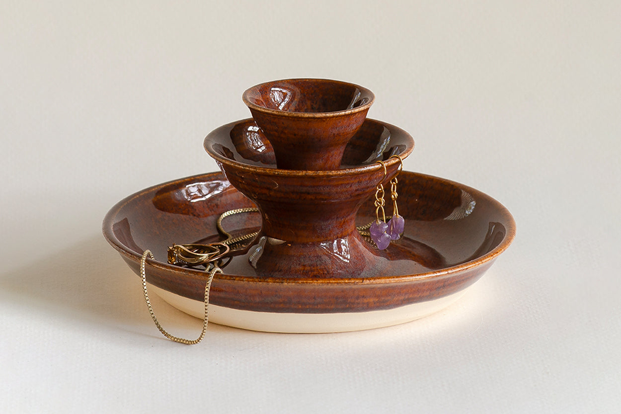 Our ceramic Jewelry Fountains features 3 tiers to display and hold your accessories. As well, they can be used as a catch for your keys or belongings anywhere in your home.